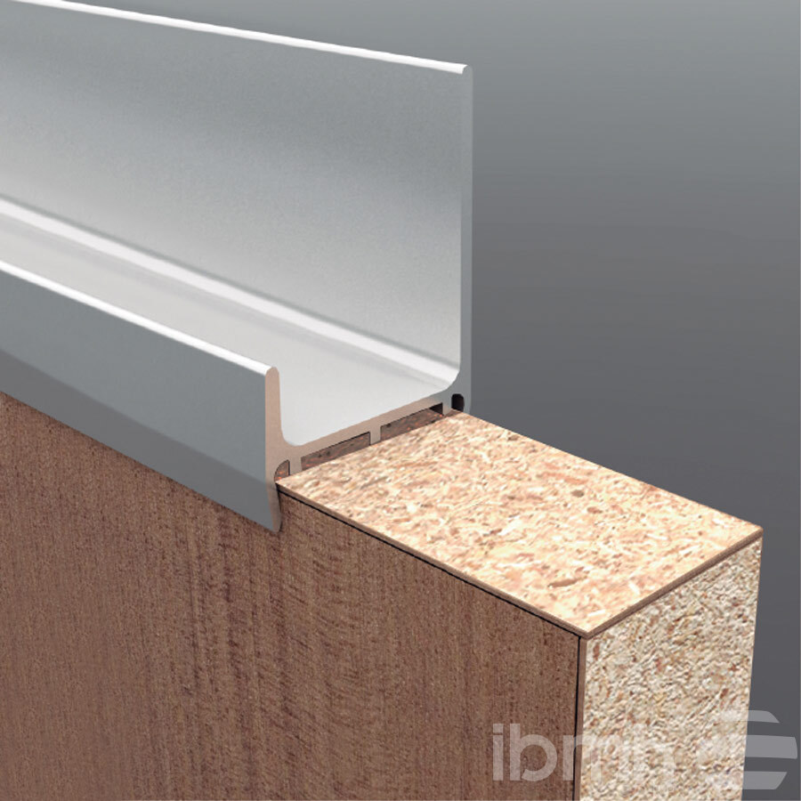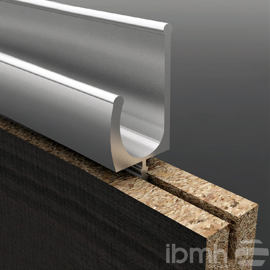 CANTONERAS Estas cantoneras son perfiles de aluminio que se utilizan en puertas de madera mediante una fresada longitudinal y consiguen el efecto de puerta de aluminio. Acabados en aluminio anodinado mate y en brillo, aunque se pueden fabricar en cualquier otro acabado superficial. El montaje de los perfiles es muy sencillo, basta con efectuar una fresada longitudinal en la madera con un disco de corte e introducir los perfiles a presión. Herrajes en aluminio fabricados con materias primas de la más alta calidad, especialmente concebidos para su utilización en los muebles de cocina.